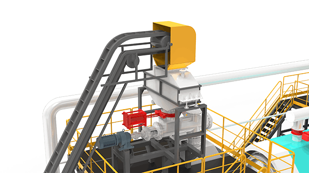全連續煉油設備采用雙螺旋輸送機、密封料倉和電子稱重系統,對進料量進行監測、控制和統計。